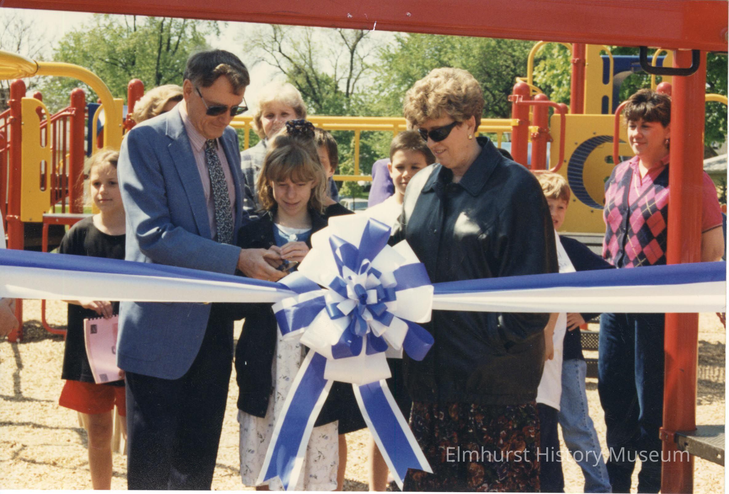 Ribbon cutting dedication ceremony for a new playground at Field Elementary School at 295 Emroy Avenue.Photograph Details