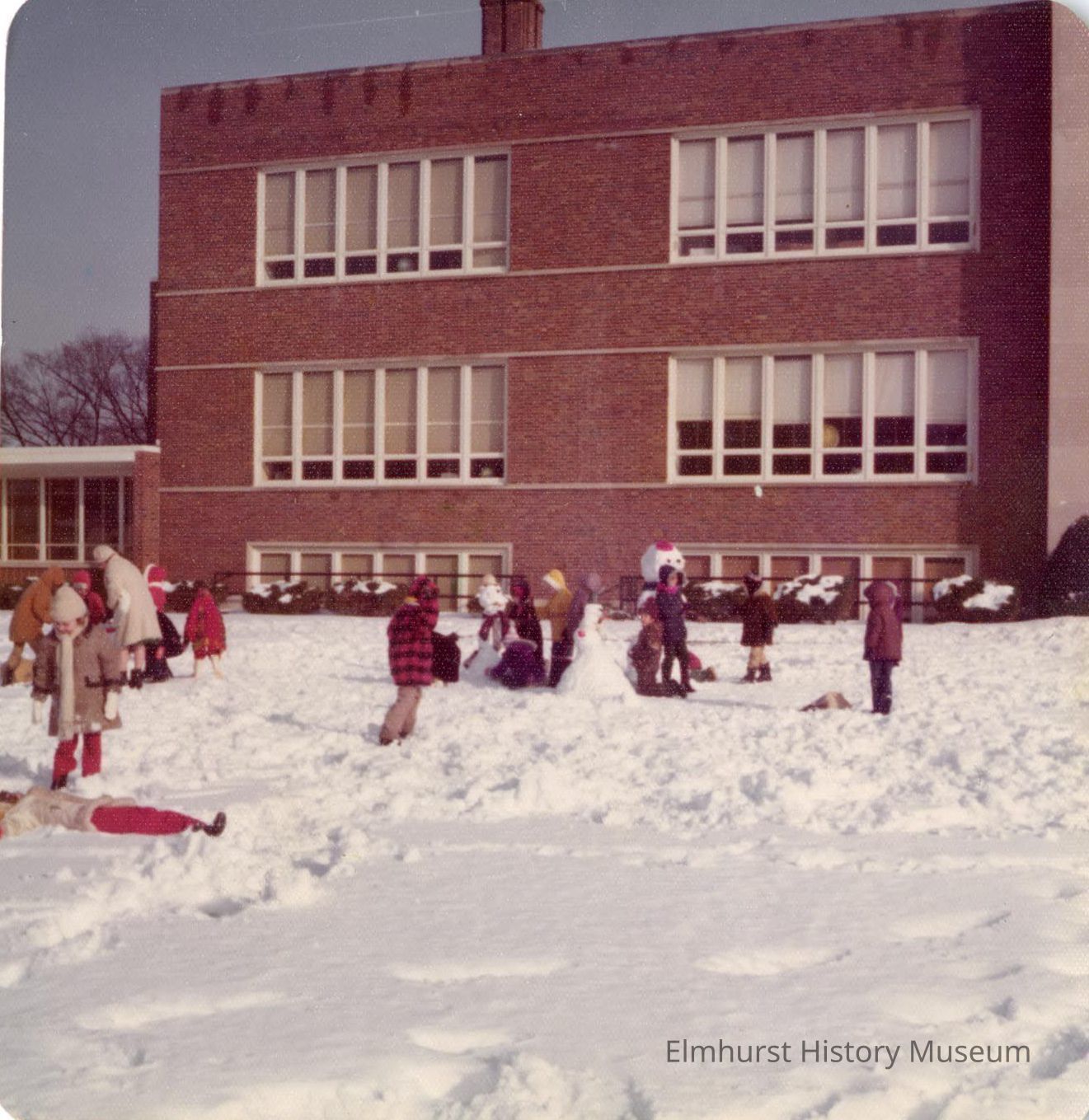 Ms. Audra Pence's class plays in the snow outside of Field Elementary School at 295 Emroy Avenue.Photograph Details