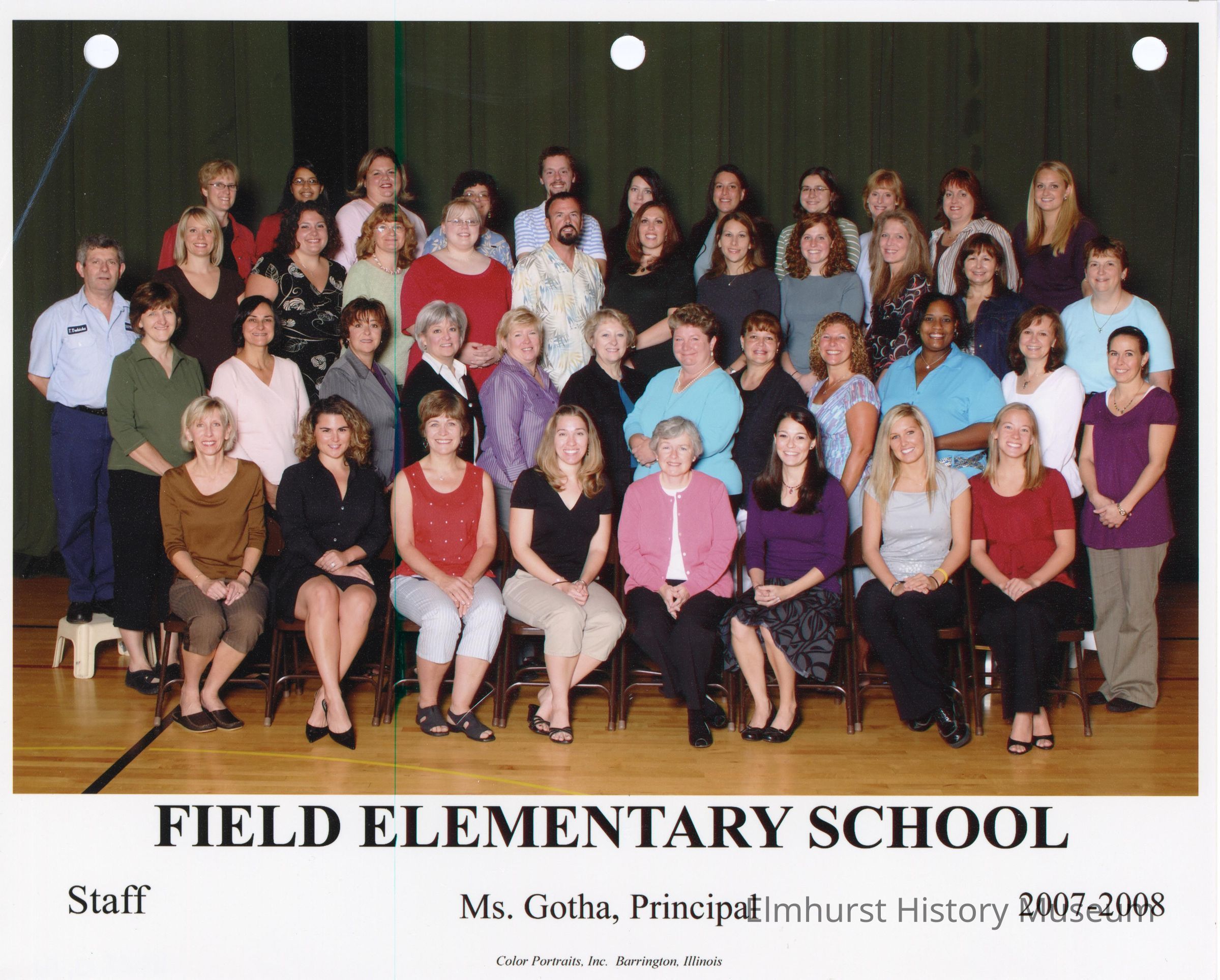 Staff photograph from Field Elementary School, under Principal, Ms. Gotha. Student names are listed at the bottom of the photograph.Photograph Details