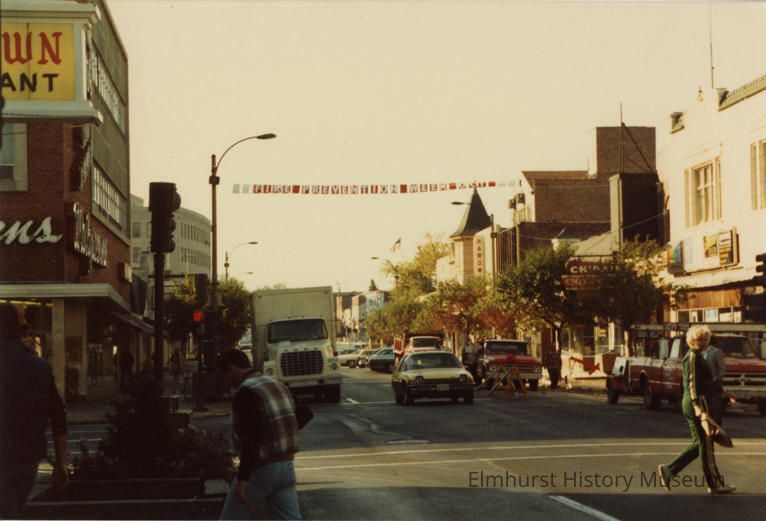 Fire Prevention Week Banner on N. York Street, looking south towards First Street.Photograph Details