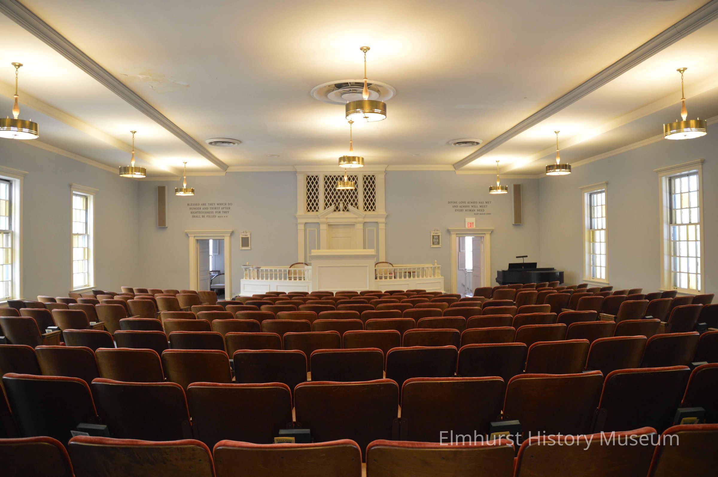 Interior view of the sanctuary at the First Church of Christ, Scientist at 271 S. Prospect.Photograph Details