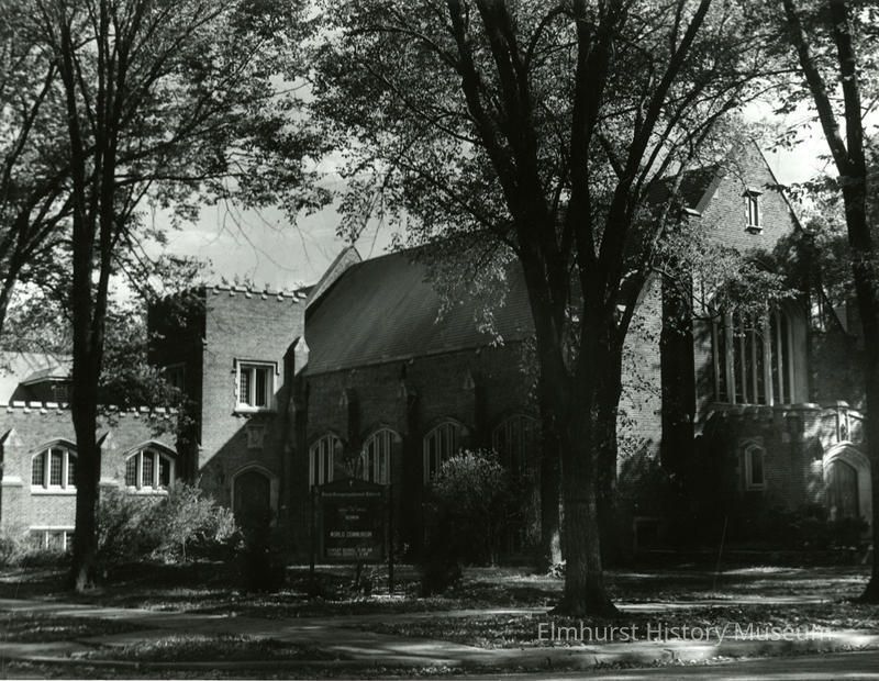 on back: First Congregational Church of Elmhurst Church St and Kenilworth Ave Photograph by R.L. Mahon September 1841 Built in 1928 on the south east corner of Church and Kenilworth, replacing the building of Old Christ Church