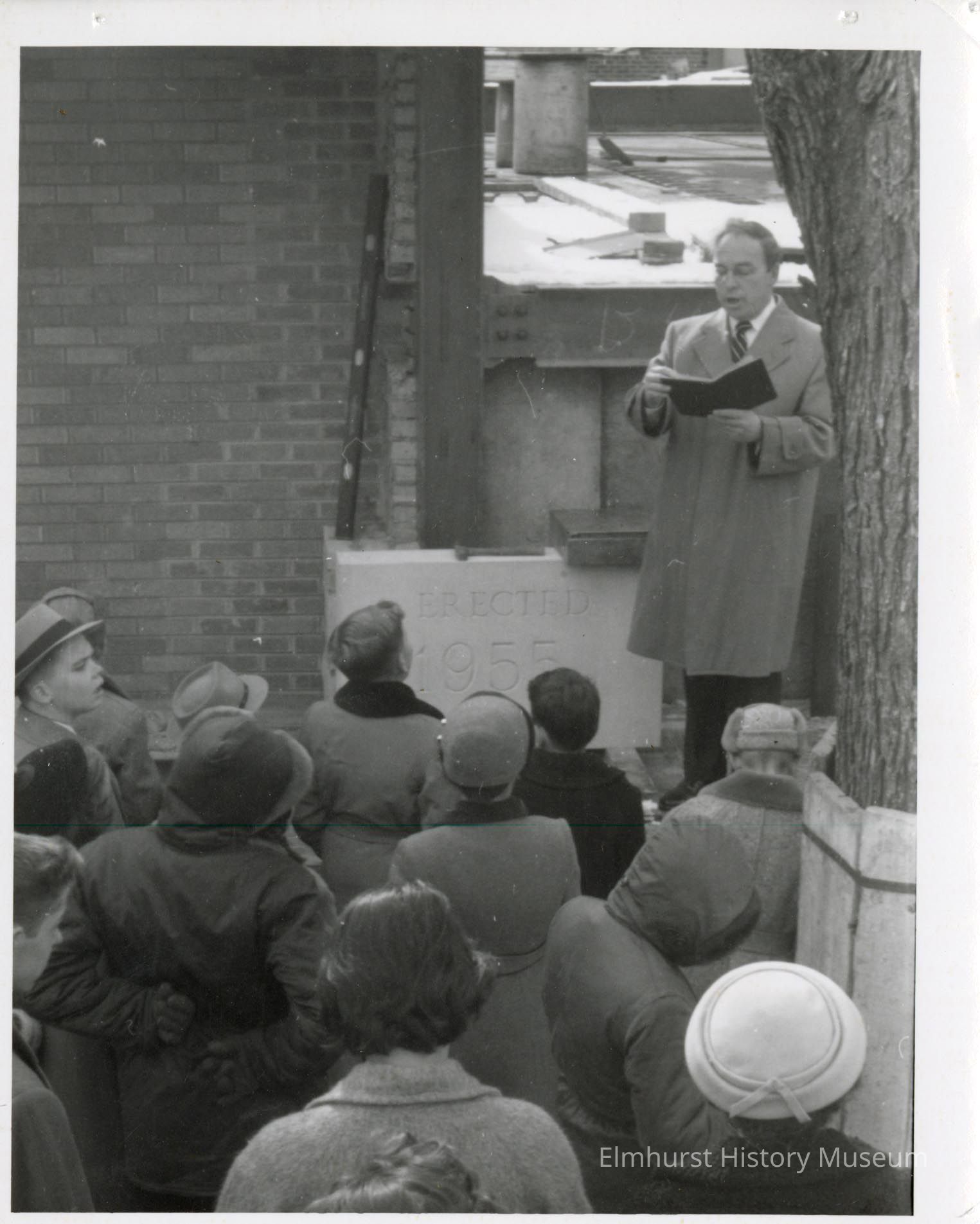 Attendees at the groundbreaking and cornerstone laying ceremony of the First Congregational Church of Elmhurst at 235 S. Kenilworth Avenue.Photograph Details