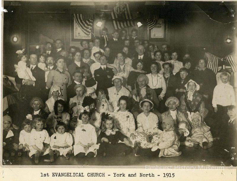 First Evangelical Church Congregation, dressing in revolutionary war era costume to celebrate George Washington's Birthday.Photograph Details