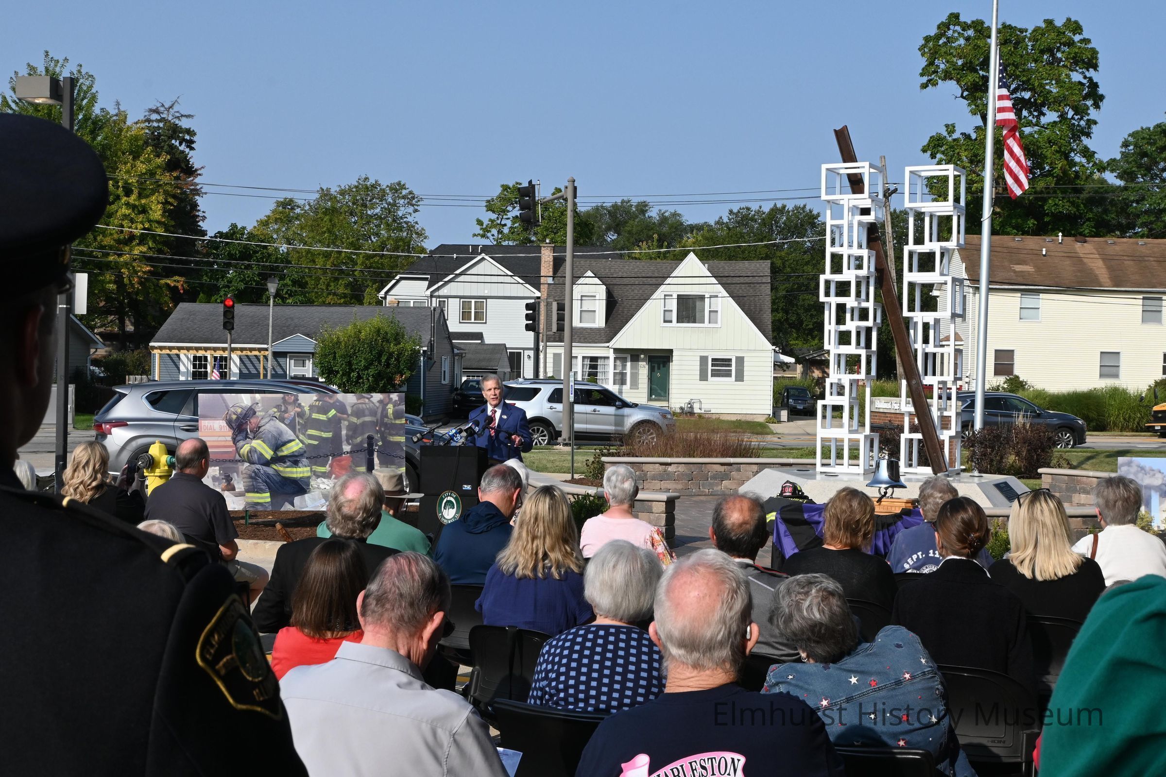 Mayor Scott Levin speaks at the dedication ceremony for the First Responders Memorial at Fire Station No. 2 at 605 S. York Street.Photograph Details