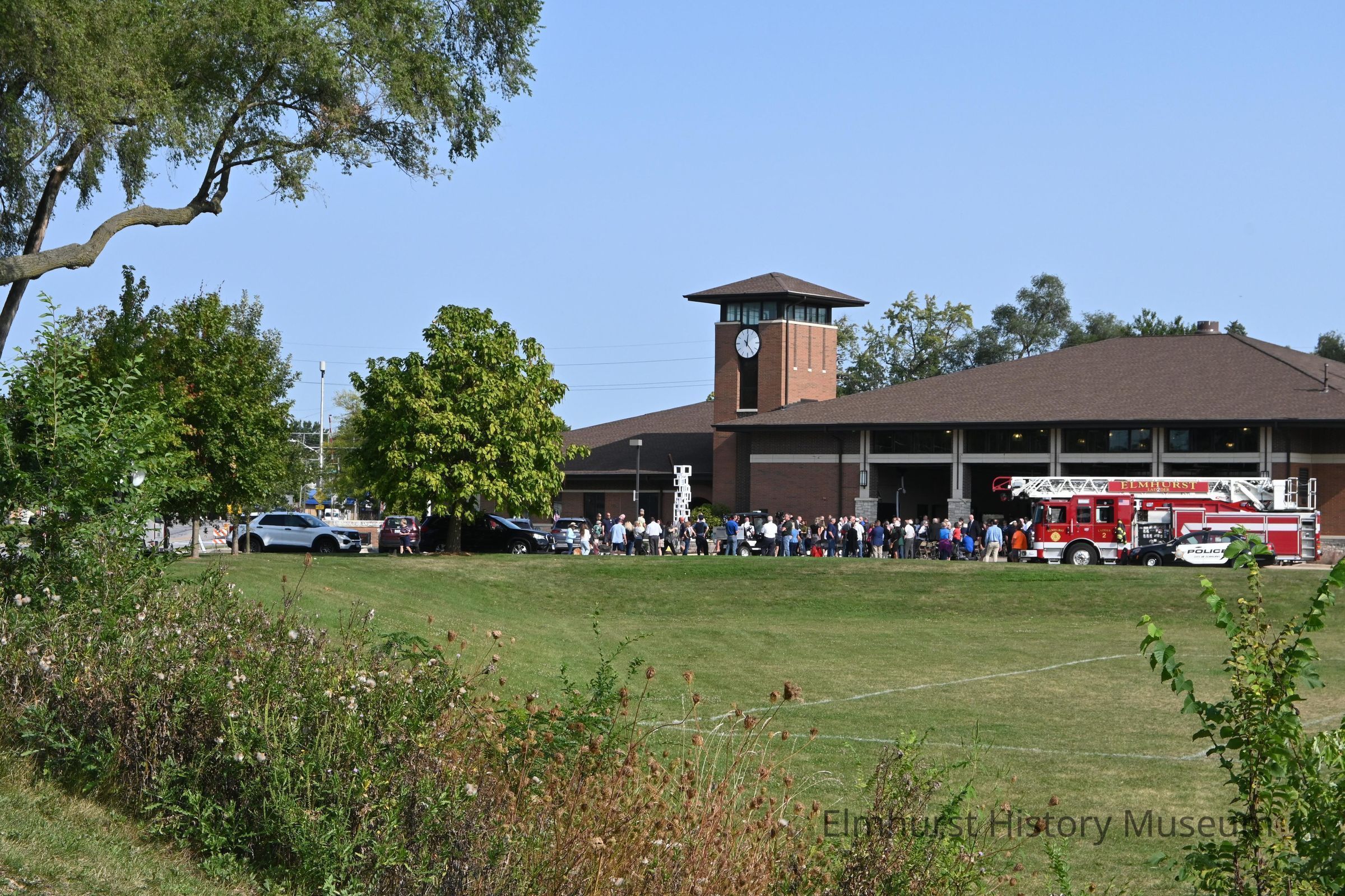 A crowd at the First Responders Memorial dedication ceremony at Fire Station No. 2 at 605 S. York Street.Photograph Details
