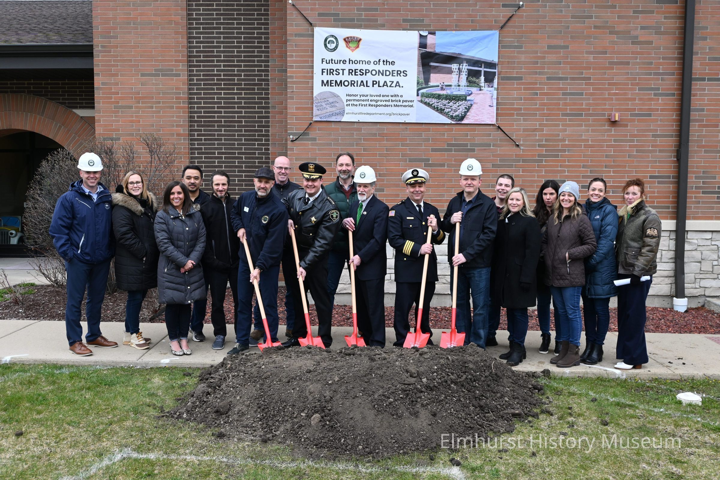 City of Elmhurst employees at the groundbreaking ceremony for First Responders Memorial Plaza at Fire Station 2 at 605 S. York Street.Photograph Details