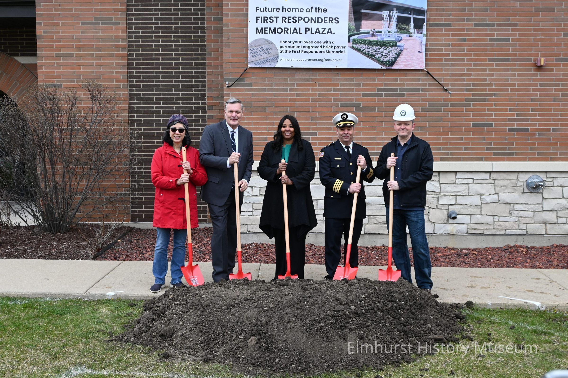 City of Elmhurst and Elmhurst University officials at the groundbreaking ceremony for First Responders Memorial Plaza at Fire Station 2 at 605 S. York Street.Photograph Details