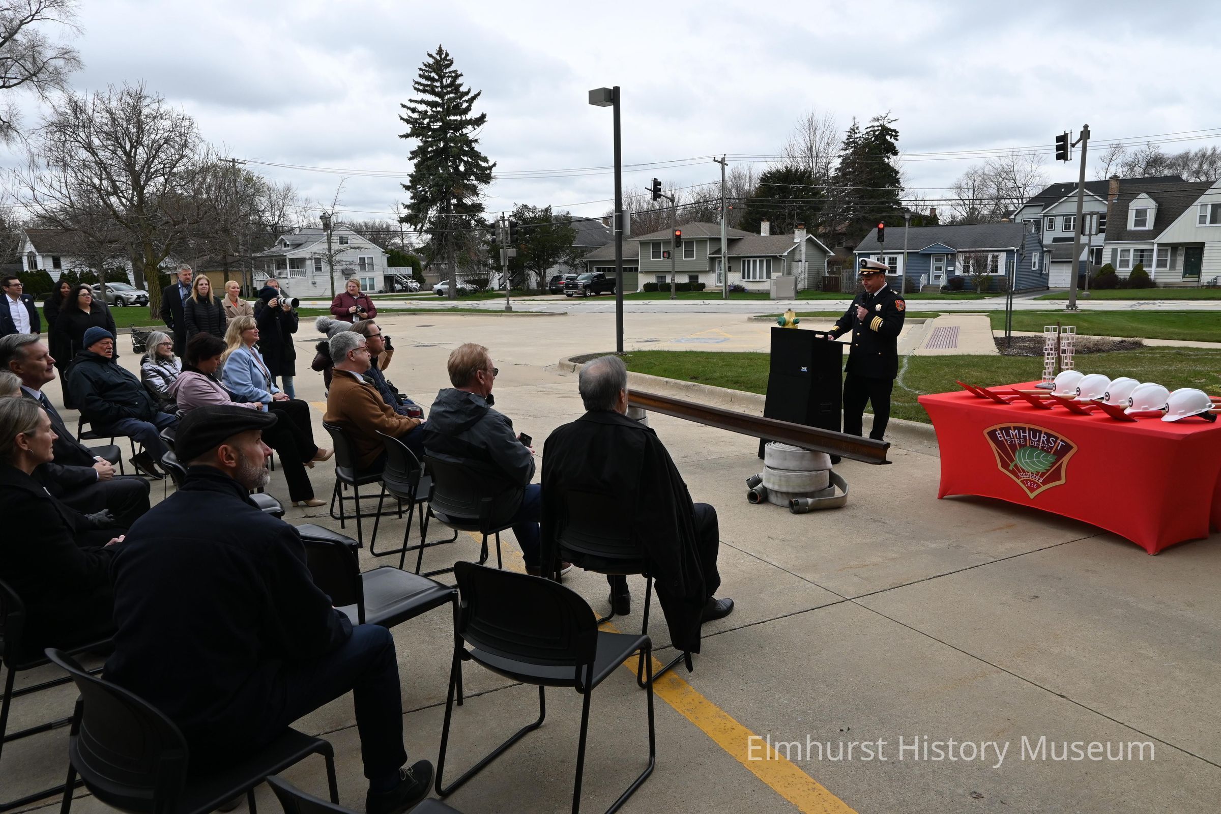 Elmhurst Fire Department deputy chief Steve Reynolds speaks at the groundbreaking ceremony for First Responders Memorial Plaza at Fire Station 2 at 605 S. York Street.Photograph Details