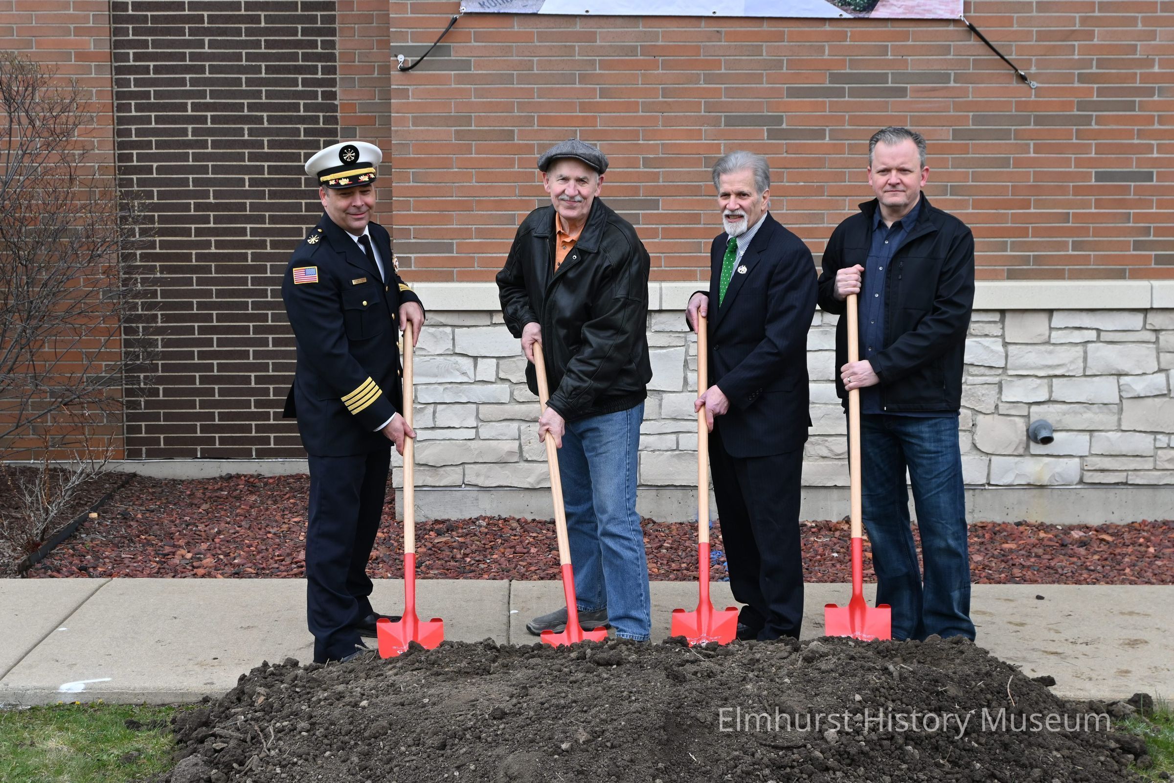 Deputy Fire Chief Steve Reynolds, Mayor Scott Levin, and artist Jason Peot at the groundbreaking ceremony for First Responders Memorial Plaza at Fire Station 2 at 605 S. York Street.Photograph Details