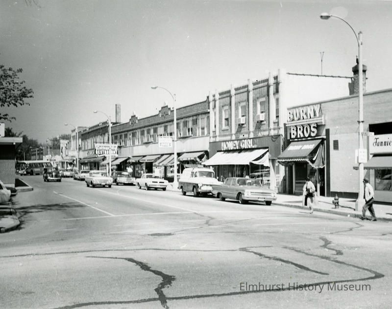 Stamped: Elmhurst Public Library / Elmhurst, ILL Noted: First St west from York St. / Taken May 21, 1966 by R.L. Mahon / (photo details)