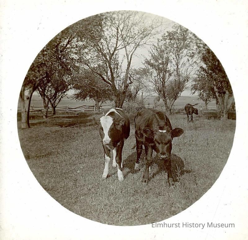 Cows and livestock on the Fischer Farm near Grand Avenue.