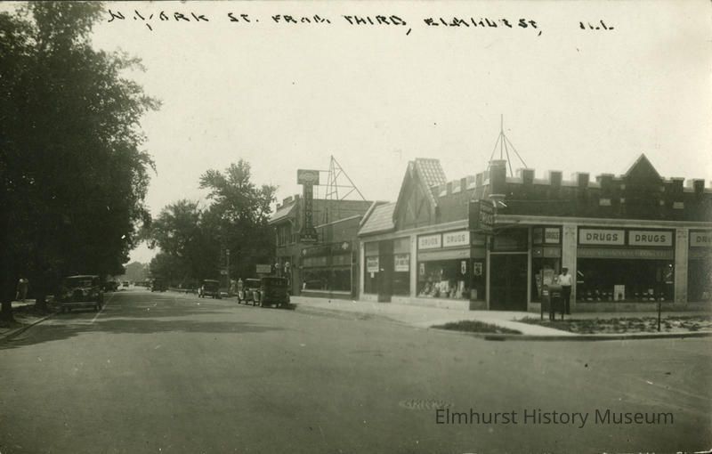 N. York Street looking south from Third Street. Fisher's Pharmacy was on the southwest corner of York and Third Streets.
