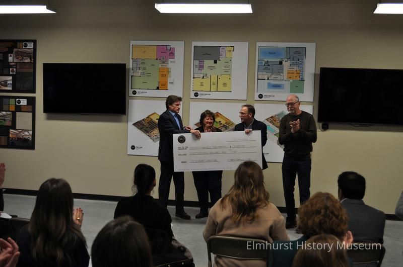 Founder and CEO of Fitness Formula Clubs presenting a check to the Elmhurst-Yorkfield Food Pantry on FFC's opening day at 140 N. AddisonPhotograph Details