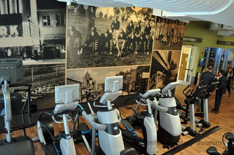 Historical photo mural at Fitness Formula Clubs gym at 140 N. Addison. Photos provided by EHM.Photograph Details