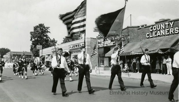 Written in ink on the back: 6/18/39 Flag & Centennial Parade Elmhurst, Ill.