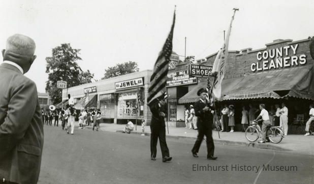 Written in blue ink on back: 6/18/39 Flag & Centennial Parade Elmhurst, Ill