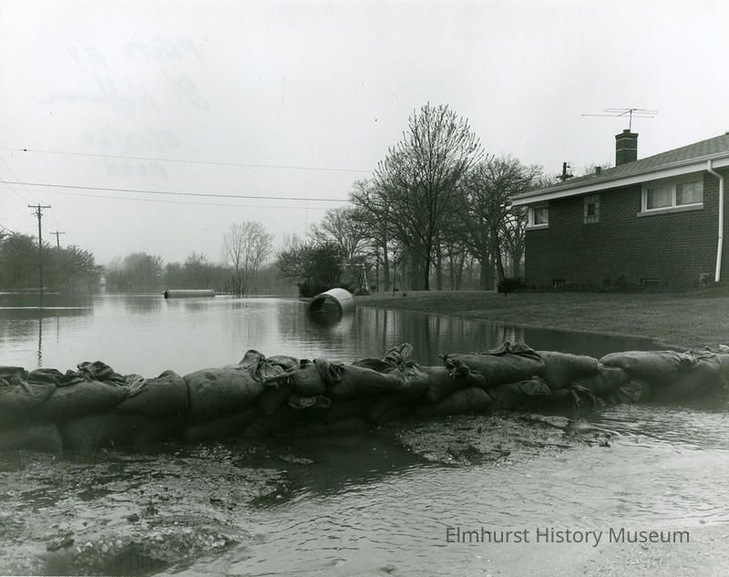 Salt Creek flooded at the sandbag line at Fairview Avenue and Madison StreetPhotograph Details