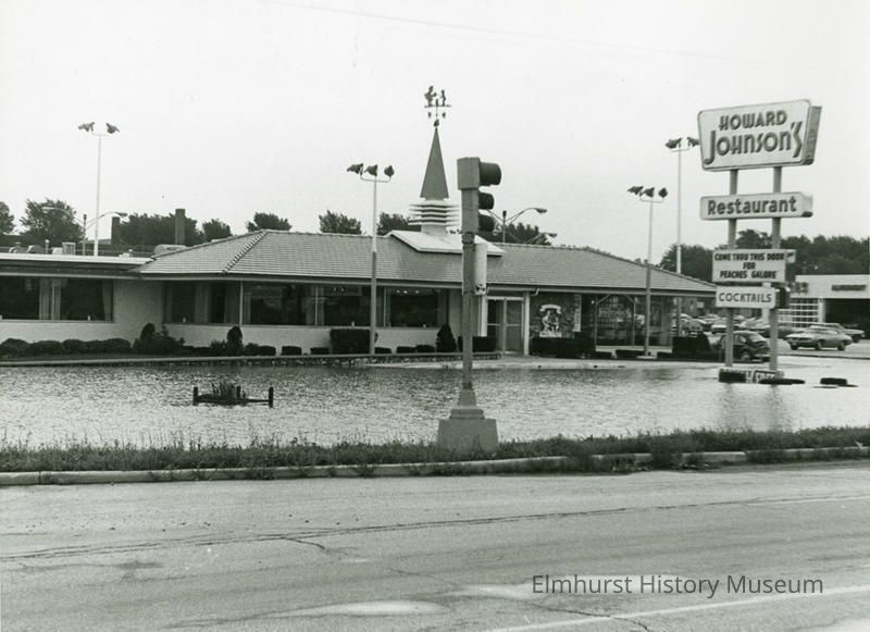 A Howard Johnson's restaurant on the northeast corner of St. Charles Road and Route 83 following a Salt Creek flood, looking southeastPhotograph Details