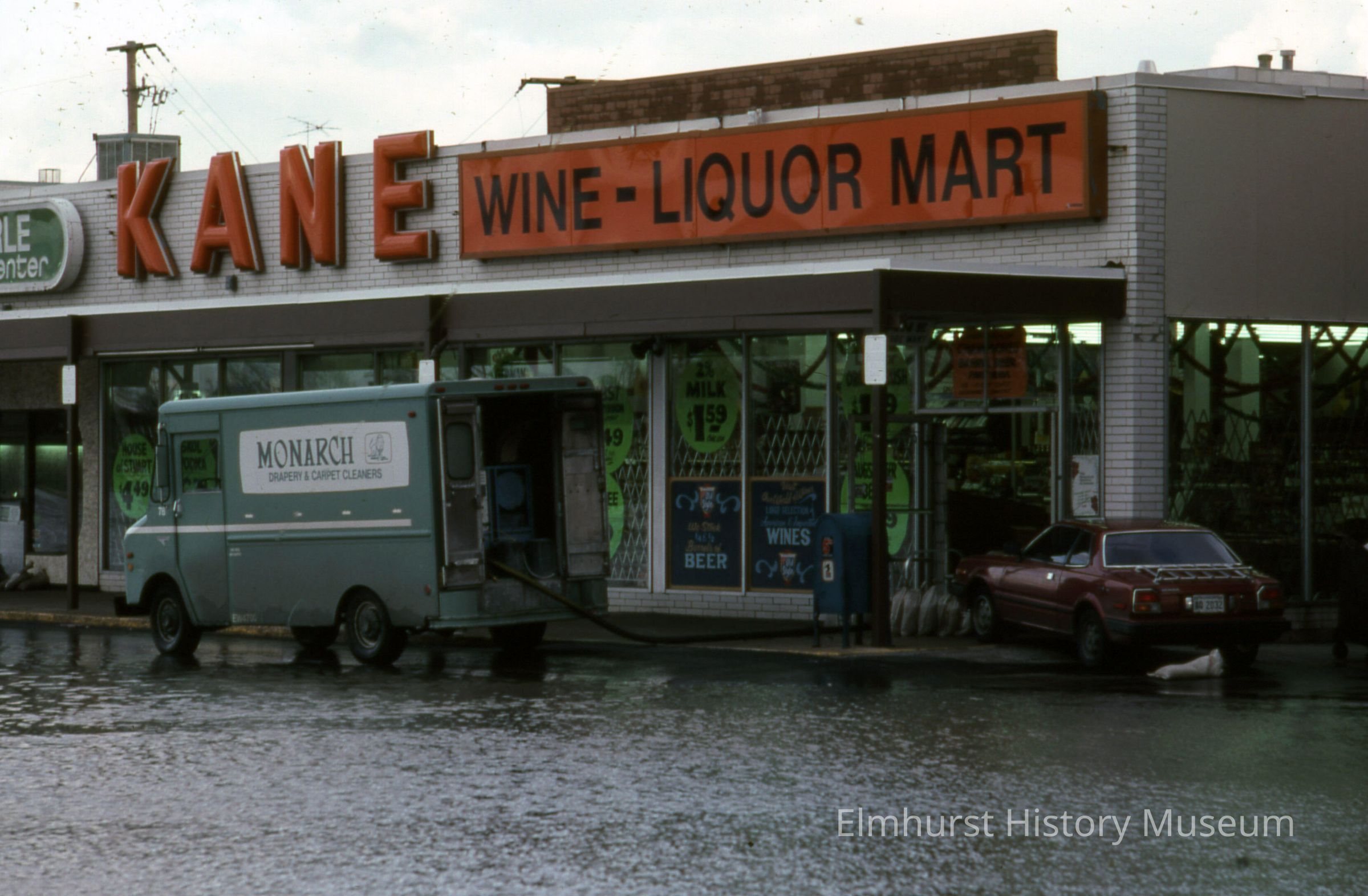 Flooded parking lot in the shopping center at St. Charles Road and Route 83Photograph Details
