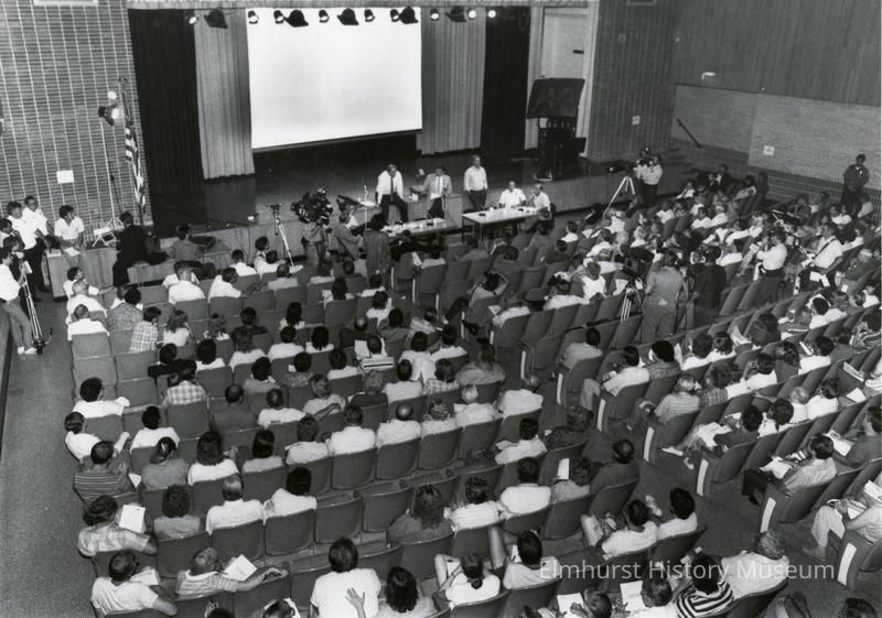An informational meeting held at Bryan Jr. High School following a major flood with city, state and utility company officials available to answer questions from the public.Photograph Details