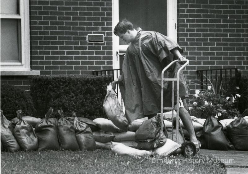 Elmhurst resident at 795 Saylor Avenue cleaning up after a major flood.Photograph Details