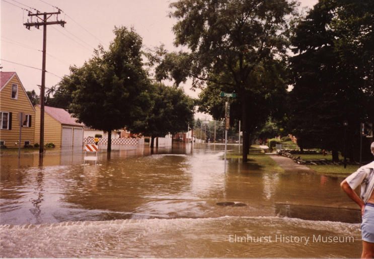 Flooding from Salt Creek at Spring Road and Madison Street, looking west.Photograph Details