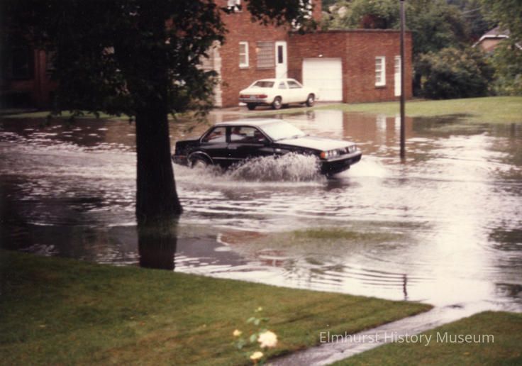 Car driving through high standing flood water on the 200 block of Larch AvenuePhotograph Details