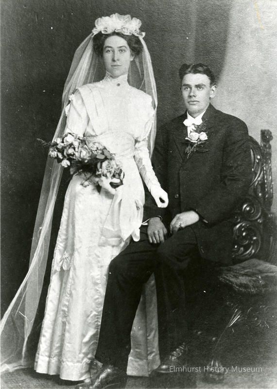 Portrait of Fred H. Fiene and Lydia Hoehne Fiene on their wedding day, married in Proviso Township, IL.Photograph Details