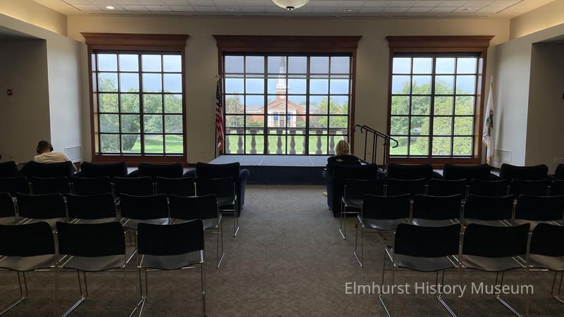 Interior view of the Frick Center student union at Elmhurst University, looking towards Hammerschmidt Chapel.Photograph Details