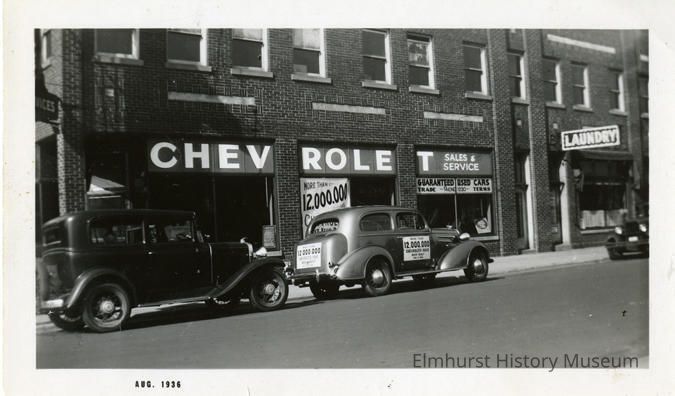 Geisen Chevrolet car dealership at First Street and Larch Avenue.Photograph Details