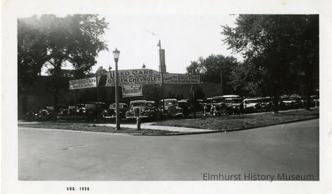 Geisen Chevrolet car dealership at First Street and Larch Avenue.Photograph Details