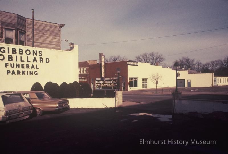 Roesch Plymouth car dealership at 137 S. York Street, across the street from Gibbons Robillard Funeral Home on S. York Street.Photograph Details