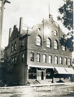 West façade of the Glos Block on the southeast corner of York Street and Park Avenue. It housed the post office circa 1884 to circa 1918.Photograph Details