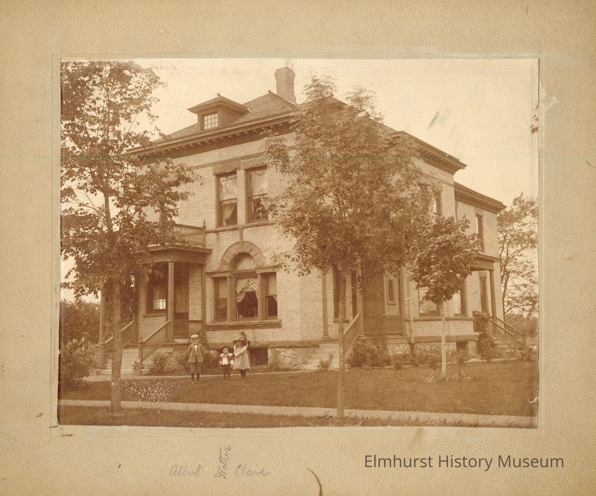 Siblings Clara, Albert, and Walter Glos, children of Emma and Jacob Glos, at the Busche Family house at 616 Park Street in Elgin.Photograph Details