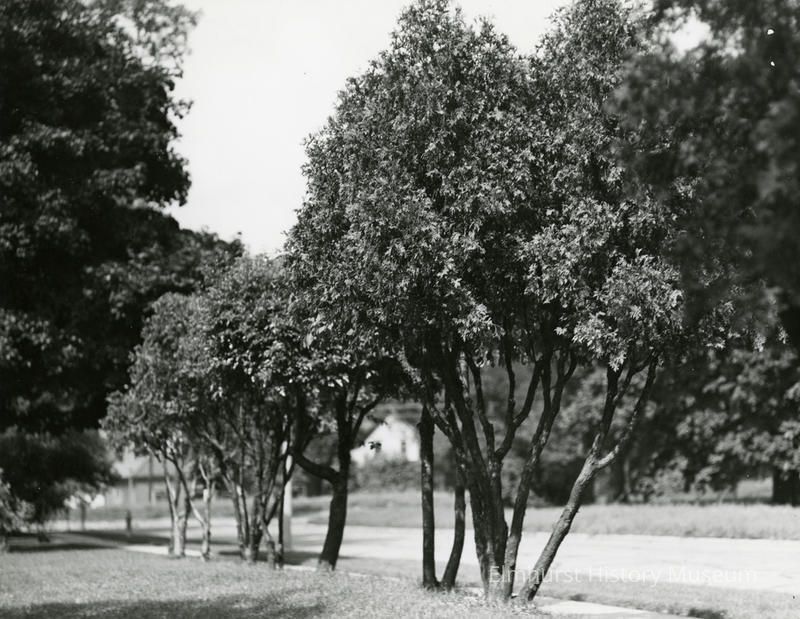 on back: Last of Arbor Vitae Hedge on property of Mrs. Glos- 104 S. Kenilworth By LH Longwell