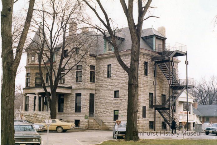 Exterior detail of the Glos Mansion at 104 S. Kenilworth, shortly before it became the Elmhurst Historical Museum