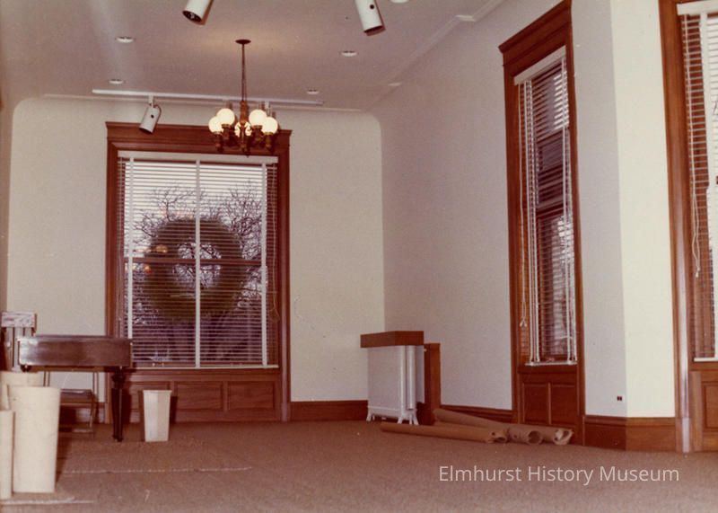 Interior view of the first floor gallery at the Glos Mansion at 104 S. Kenilworth, shortly before the opening of the Elmhurst Historical Museum.Photograph Details