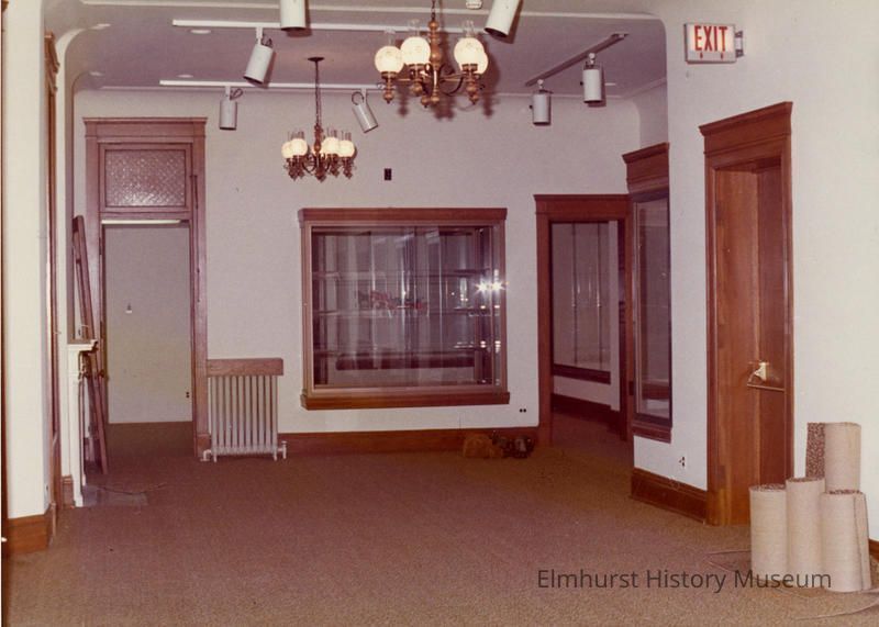 First floor gallery at the Glos Mansion at 104 S. Kenilworth Avenue, shortly before the opening of the Elmhurst Historical Museum.Photograph Details