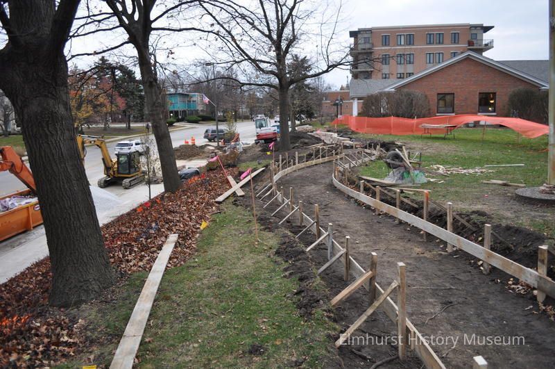 Installation of a new walkway in front of the Glos Mansion along Robert Palmer Drive, on Elmhurst History Museum grounds.Photograph Details