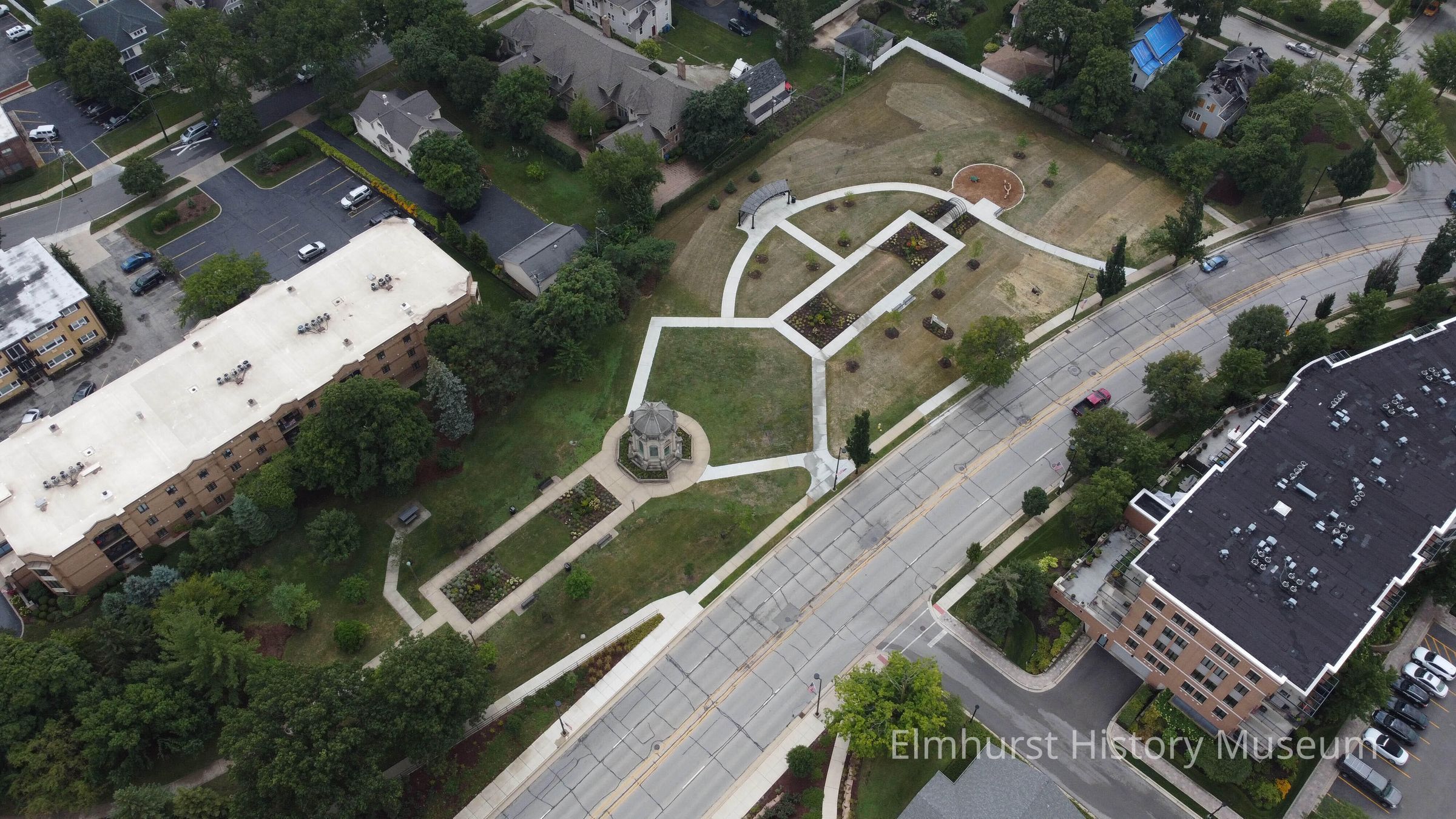 Aerial view of the recently redeveloped south end of the Glos Memorial Park.Photograph Details
