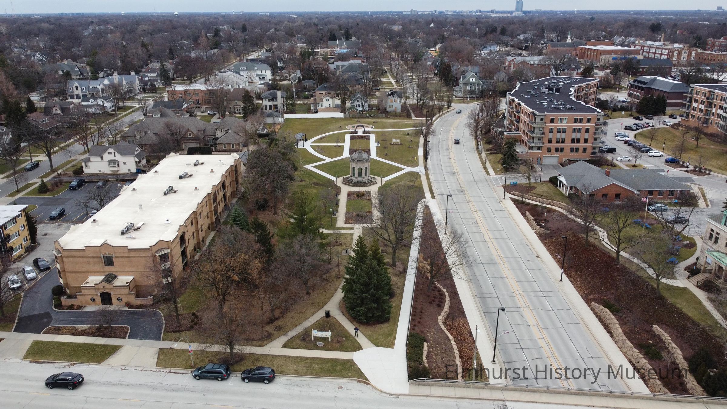 Aerial view of Glos Memorial Park, looking south from E. Park Avenue.Photograph Details