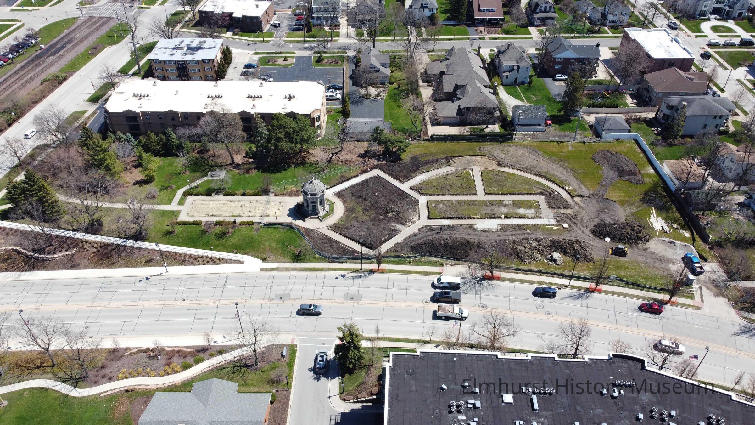 Aerial view of the Glos Memorial Park expansion to the south of the original park layout, looking east along Palmer Drive.Photograph Details