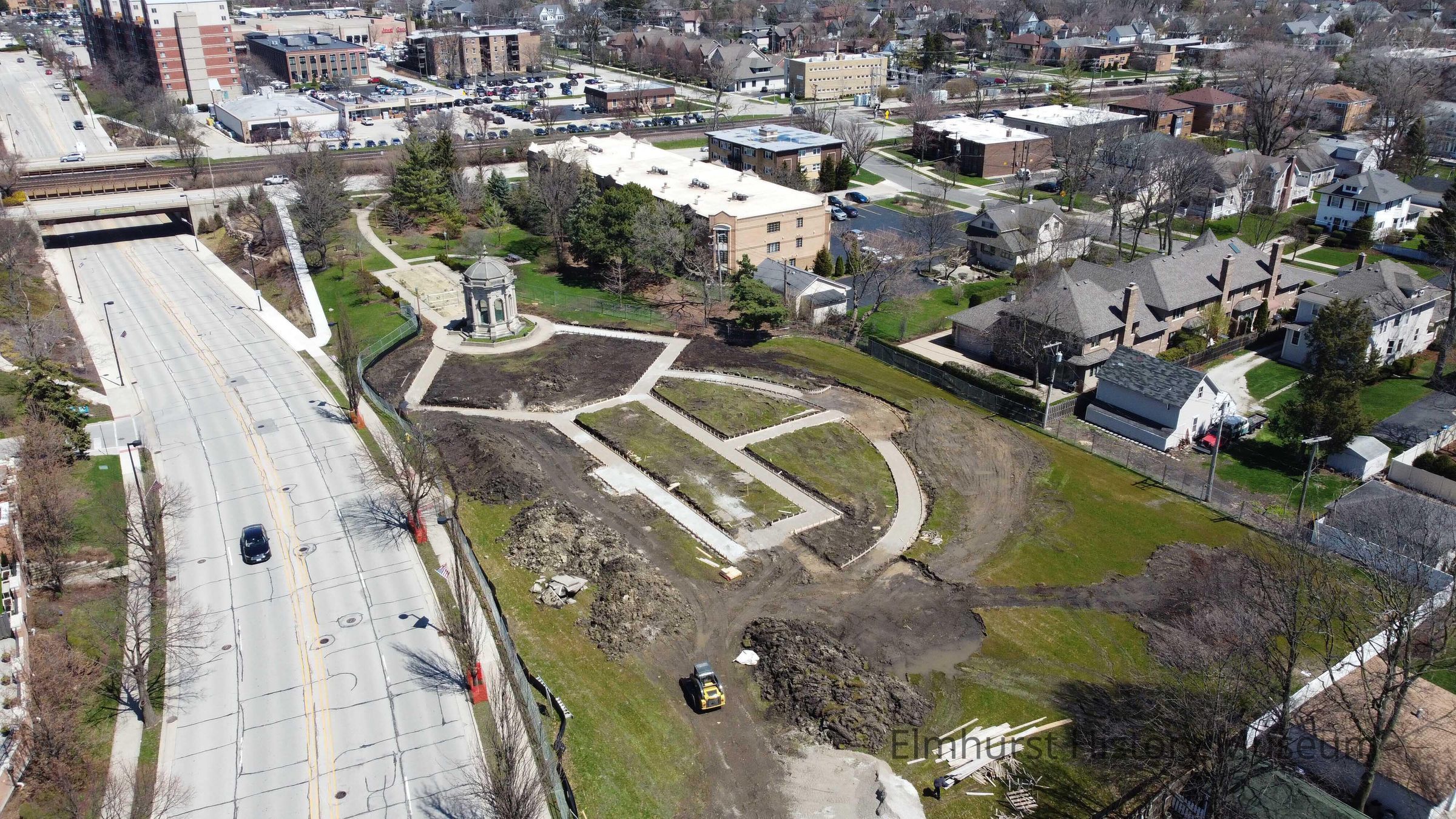 Aerial view of the Glos Memorial Park expansion to the south of the original park layout, looking north along Palmer Drive.Photograph Details