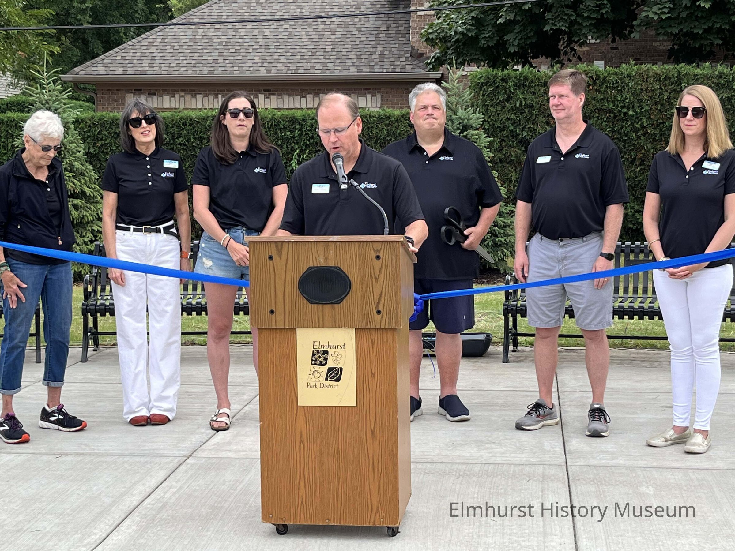 The Elmhurst Park District's dedication and ribbon cutting ceremony for the Glos Memorial Park expansion at the former 135 S. Palmer Drive area.Photograph Details