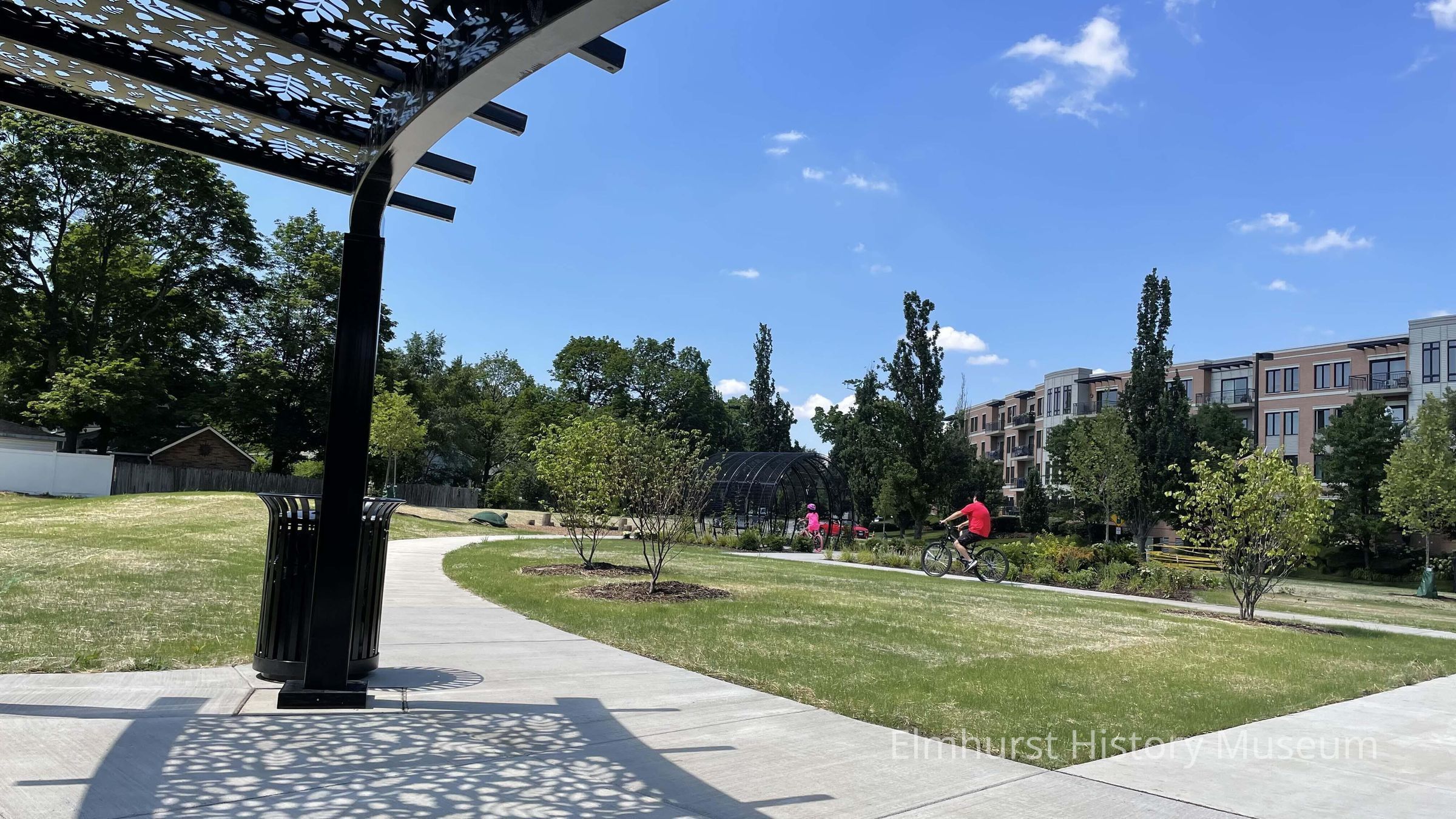 The newly-opened Glos Memorial Park expansion area, looking southwest towards the Crescent Court apartments.Photograph Details