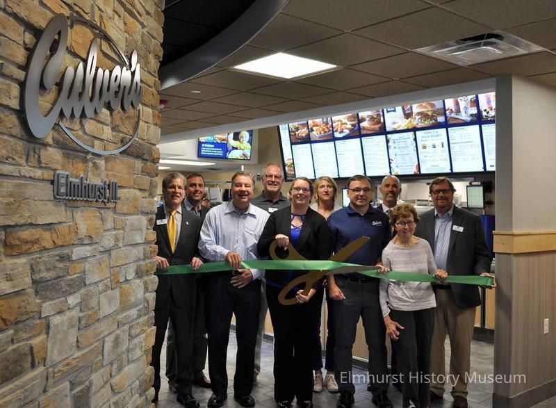 Elmhurst Chamber of Commerce ribbon cutting ceremony on the opening day of Culver's at 436 N. York Street. City officials and aldermen are pictured alongside Culver's management.Photograph Details