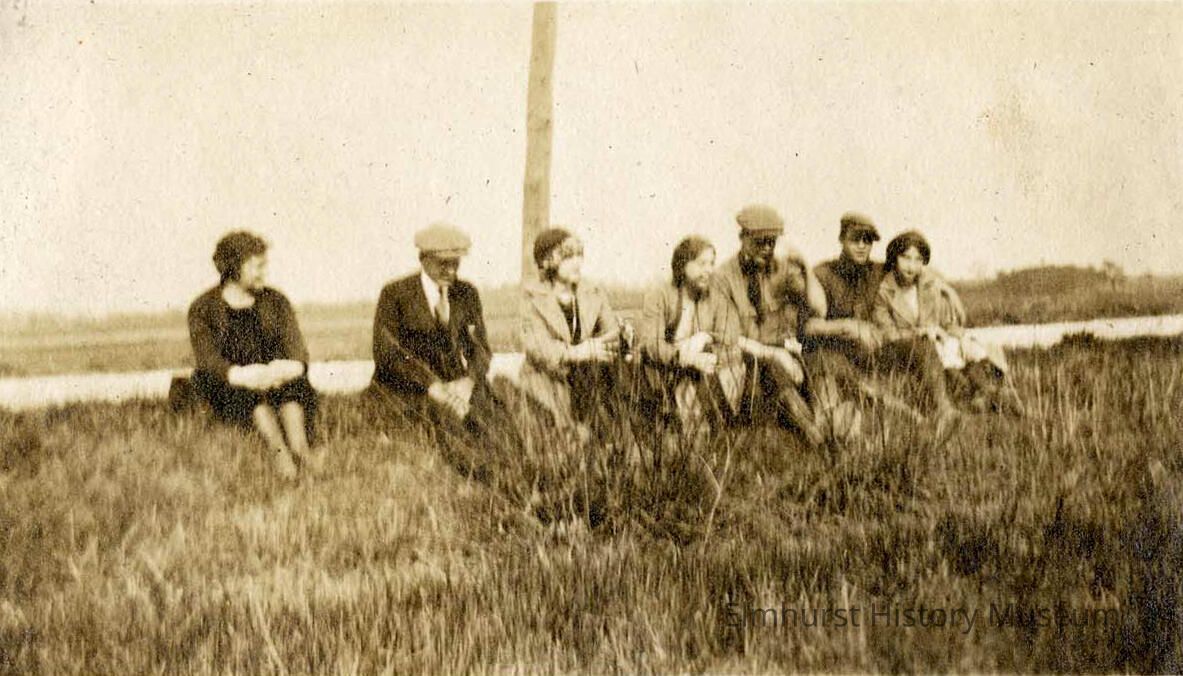 Candid group of youths/teens sitting, possibly alongside North Avenue.Photograph Details