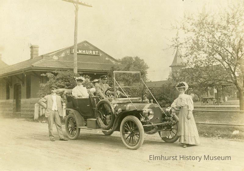 West First Street, looking southeast. The Chicago & North Western Railroad station in Elmhurst is in the background.Photograph Details