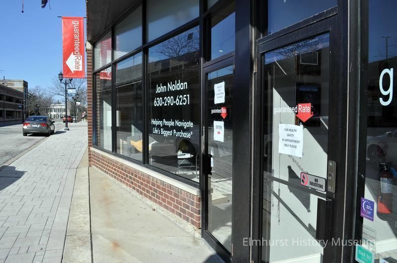 Guaranteed Rate of Elmhurst at 115 W. Adelaide Street, with limited hours during the early days of the COVID-19 coronavirus pandemic.Photograph Details